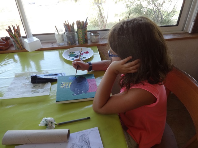 Projet de livre pour enfants "l'histoire de Kouna Diala" illustré avec la technique du monotype.