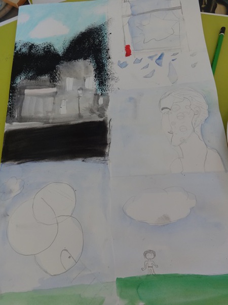 Travail des enfants des cours de dessin ILFI, pour l'illustration d'un livre " Kouna Diala" composé par les enfants de l'atelier "les Petits champollion " animé par les intervenantes de l' Aide à la Reussite Educative et l'ESC de st Valérie - Cahors